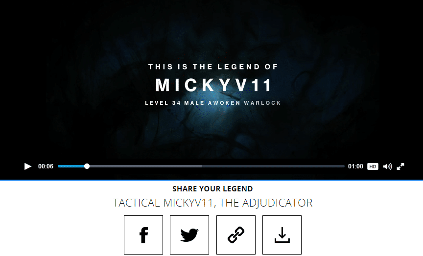 ¡Menos de 12 horas para la salida de la expansión guardianes! Antes de lanzar El Rey de los Poseídos, Bungie nos ha querido dejar con un pequeño regalo para que aumentemos (¿aún más? xD) nuestro hype, crear nuestro propio trailer. La idea consiste en introducir nuestros datos, elegir uno de nuestros personajes y el programa creara un vídeo donde saldran nuestros logros más destacados del año 1 en Destiny.