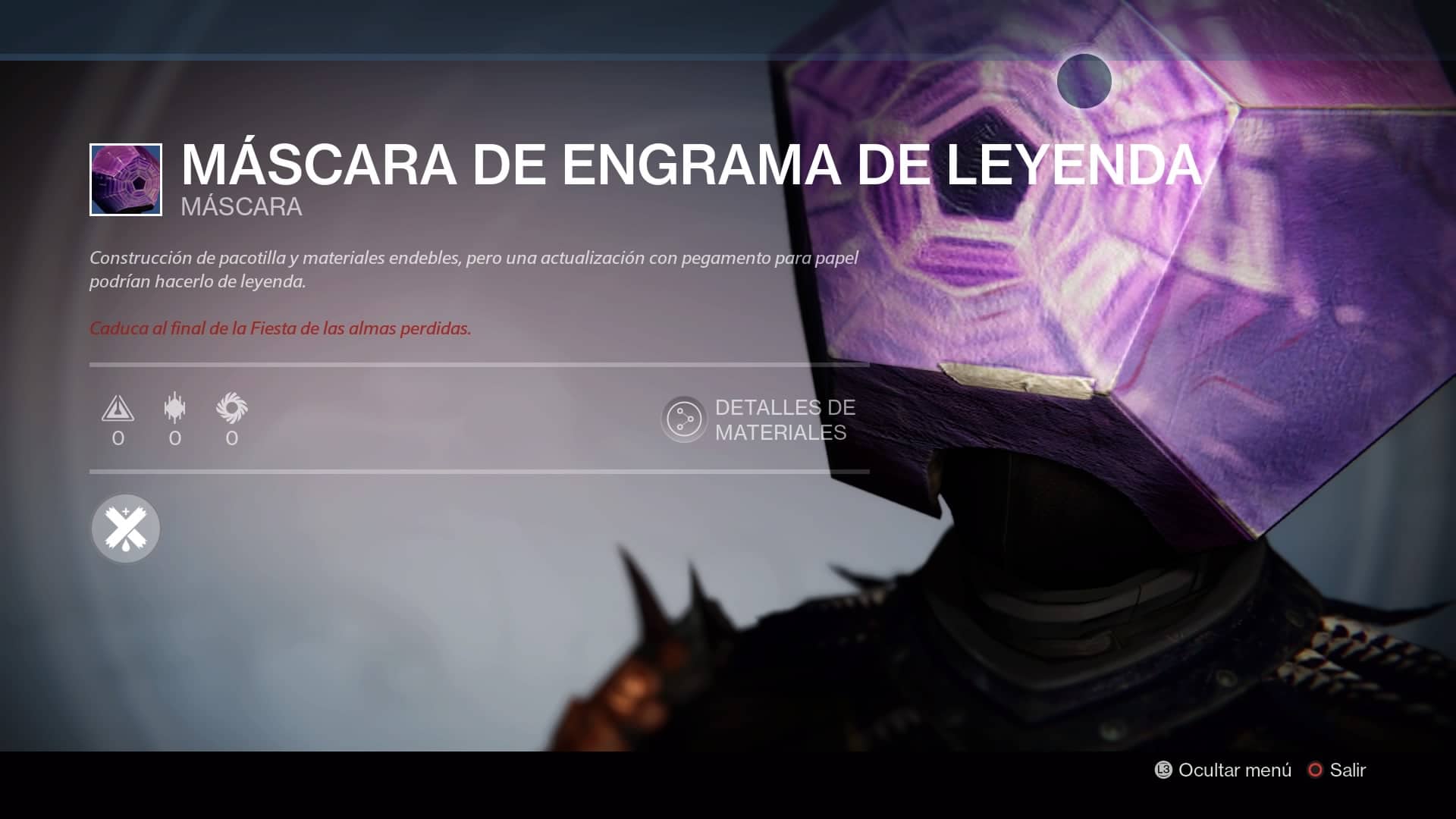 Acumula bajas en el Crisol mientras llevas una máscara.